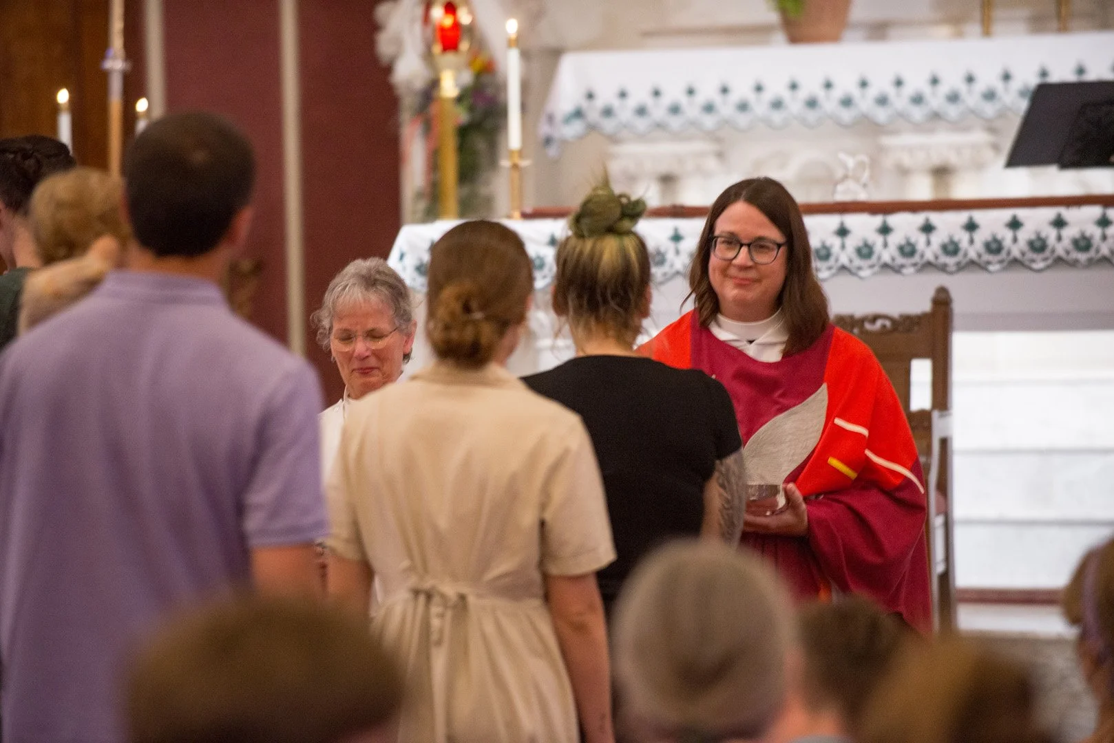 The service was scheduled to take place at the diocesan cathedral of All Saints Church, but because of a small fire at the cathedral, plans had to be quickly changed. Thanks to the hard work of the team at Trinity North Shore, All Saints Cathedral, and the extraordinary generosity of our friends at St. Andre Bessette (the Catholic Church in Amesbury where Bishop Andrew was consecrated in 2019) the ordination went flawlessly. Rev. Jen and Eric Keifer blessed those gathered with a wonderful time of fellowship and a shared meal together.